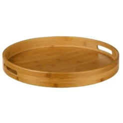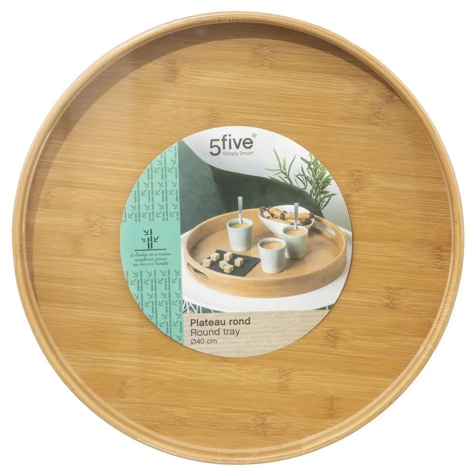 5Five Dienblad/serveerblad – Bamboe Bruin – Met Handvaten – D40 Cm
