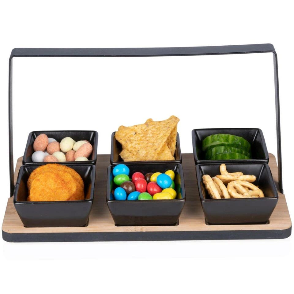 Alpina Serveerplank Met 6x Schaaltjes – Bamboe/aardewerk – L24 Cm