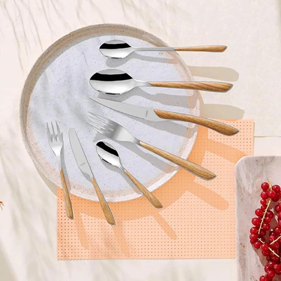 Het Eclat bestek van Amefa is de ideale keuze wanneer je de eettafel een twist wil geven. Het handvat, met een unieke vormgeving en matte afwerking, geeft dit bestek een moderne en eigentijdse uitstraling. <br><br>Deze special edition bestekset is speciaal samengesteld met alles wat je nodig hebt om met 4 personen buiten te eten; van een picknick in het park tot een familiebarbecue in de tuin. De handvatten zijn van kunststof, uitgevoerd in een print met houtnerf. De set bestaat uit:<br><br>
