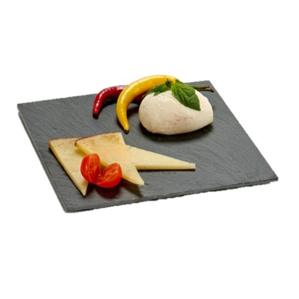 Leisteen serveerplank 20 x 20 cm. De plank is ideaal als serveer- en presenteerbord of als onderzetter voor schalen. Vaatwasmachinebestendig: Nee, handafwas wordt aangeraden. Goed afdrogen met een theedoek.