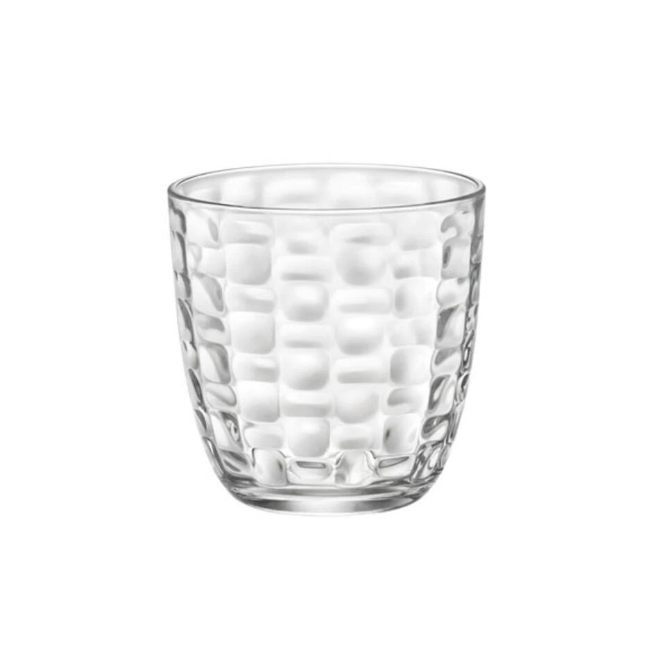 Het Bormioli Rocco Mat waterglas zorgt door zijn gebroken patroon voor een stijlvolle dinertafel. Dit glas is met een inhoud van 30 centiliter perfect voor meerdere dranken zoals water, frisdranken en vruchtensappen.