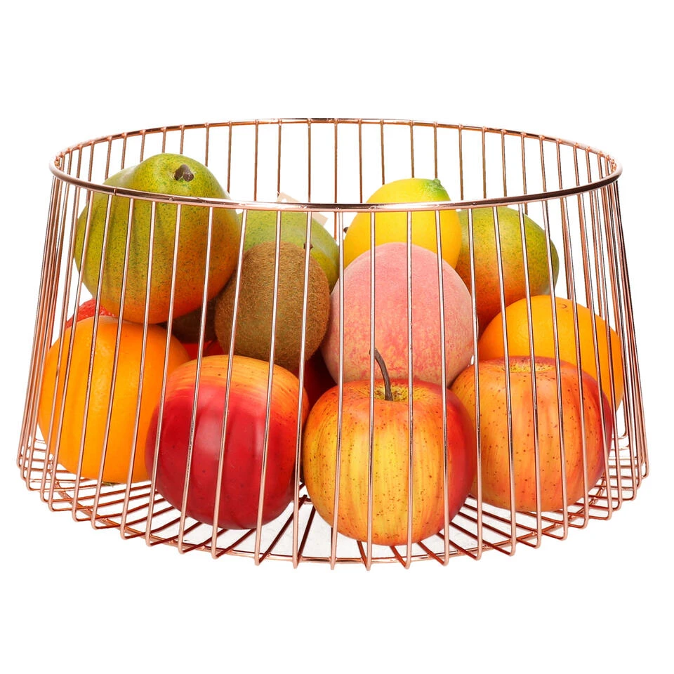 Met de Cosy & Trendy Fruitmand Koper Ø 30 cm heeft u altijd een sierlijke fruitmand op uw tafel staan. Deze koperkleurige fruitmand is gemaakt van verkoperd metaal en heeft een diameter van 30 cm. De ronde fruitmand heeft een hoogte van 15.5 cm en weegt 0.33 kg.