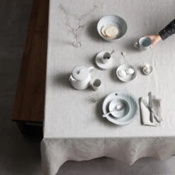 De linnen ‘Cabin’ serie van DDDDD straalt gezelligheid & luxe uit door de pure vormvastige linnen structuur en zachte kleurenpalet. Het ‘Cabin’ tafellaken is gemaakt van 100% linnen en voelt luxe en comfortabel aan. Het geeft de eettafel direct een natuurlijke uitstraling.