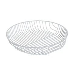 Metalen fruitschaal 30 x 30 cm. Kleur: wit. De deels open rand/wand zorgt voor een constante luchtcirculatie waardoor het fruit minder snel overrijp is.