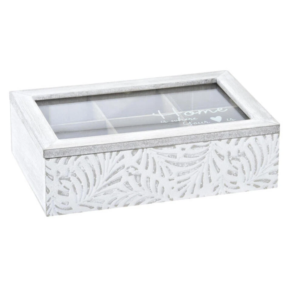 Items Theedoos/theekist Leaves – Hout – Wit – 6 Vakken