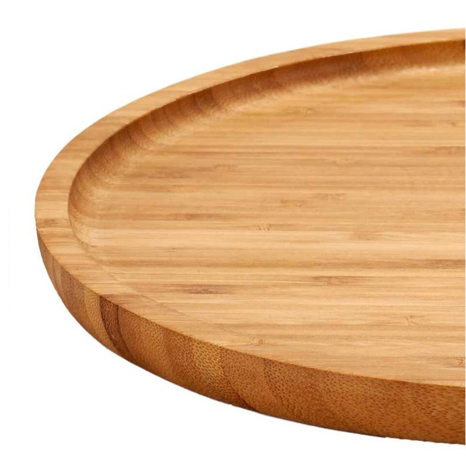 Voedsel/hapjes serveerplank van bamboe rond diameter 25 cm met rand. Keuken diner artikelen. Hapjes presenteren/serveren op deze mooie platte serveerschaal met opstaande rand van 1.5 cm. Handwas is aanbevolen. Van toastjes tot kaasblokjes tot koekjes/gebakjes, alles is mogelijk.