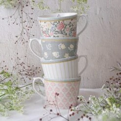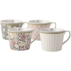 Als inspiratie werden Laura Ashleys prints uit de jaren ’50 gebruikt. De mokken uit deze set hebben een prachtige romantische vintage print, met een hedendaagse twist door het nieuwe model mok. De mokken met een inhoud van 30 cl zijn gemaakt van hoogwaardig porselein en zijn ook prachtig om cadeau te geven.