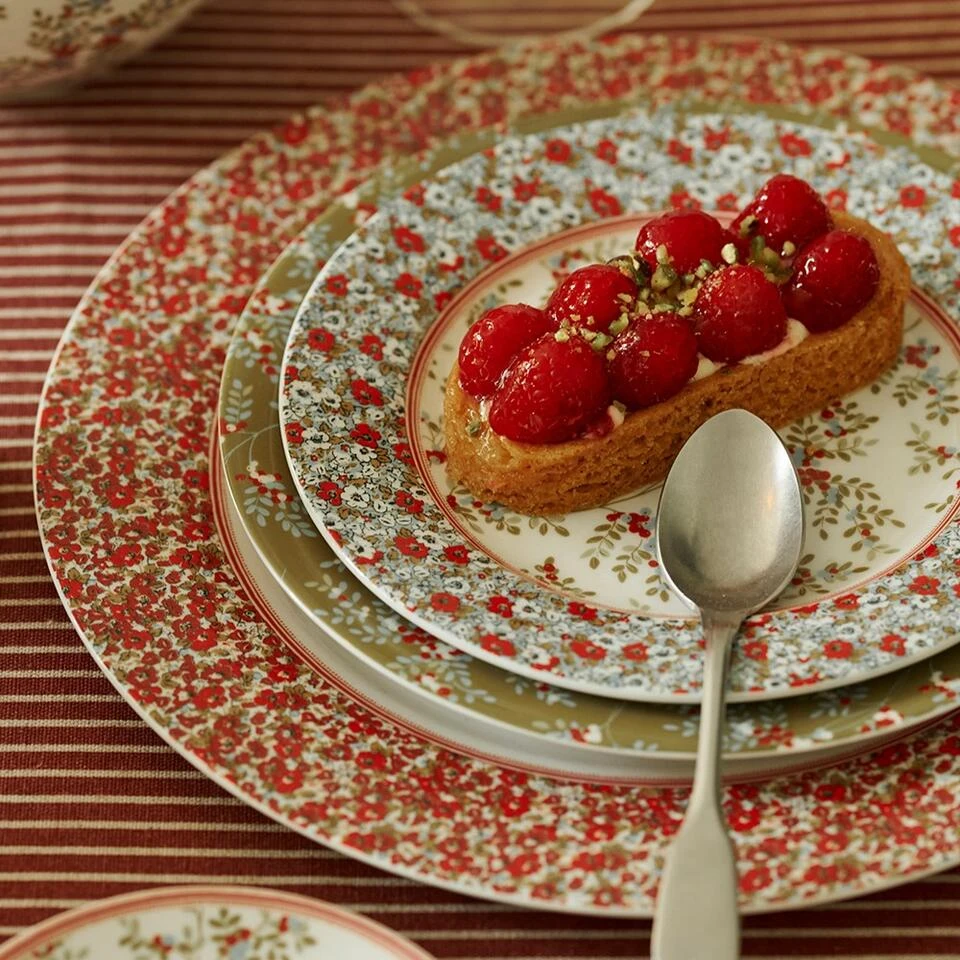 Het bord zelf heeft een subtiele witte kleur, maar de rand zorgt voor het wauw-effect. De verfijnde en gedetailleerde bloemenprints geven het geheel een elegante uitstraling.