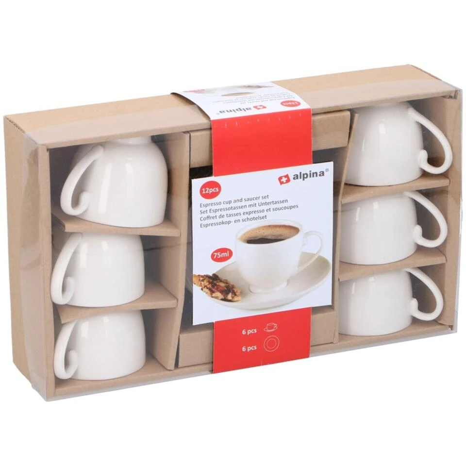 Merkloos Alpina Espresso Koffiekopjes Met Schotel – 6 Stuks – Keramiek – 75 Ml
