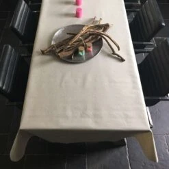 Luxe buiten tafelkleed/tafelzeil cremewit 140 x 180 cm rechthoekig. Tafeldecoratie zeil in cremekleurig gecoat linnen. Het tafellinnen is niet alleen zeer stijlvol, maar ook van zeer hoge kwaliteit. Het tafellinnen is gecoat met teflon, waardoor het vlekwerend en waterafstotend is.