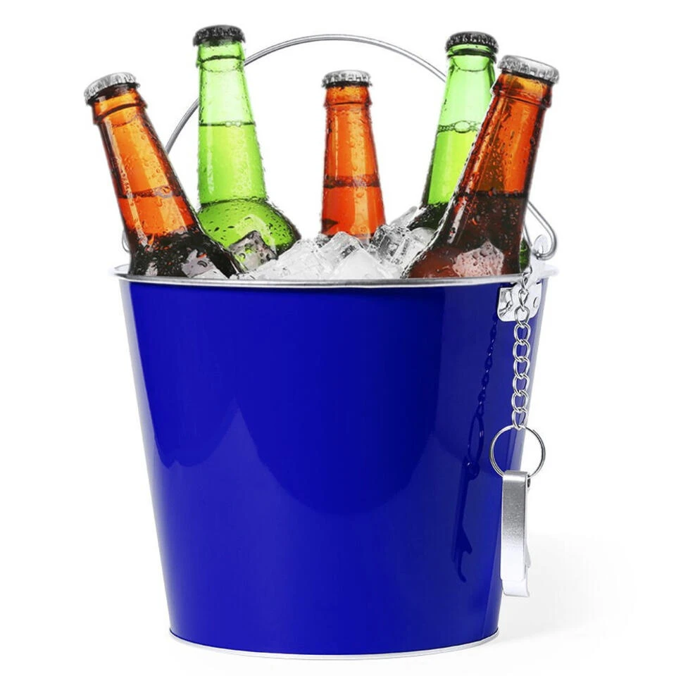 Merkloos IJsemmer Bierkoeler – Metaal – Blauw – 6 L – Met Handvat