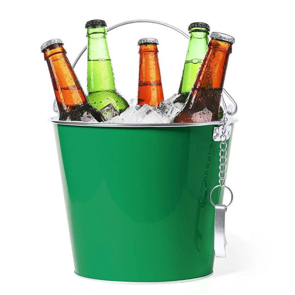 Merkloos IJsemmer Bierkoeler – Metaal – Groen – 6 L – Met Handvat