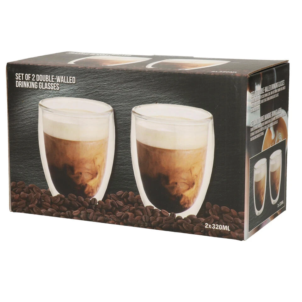 Merkloos Koffieglazen – 2 Stuks – Dubbelwandig – Glas – 350 Ml