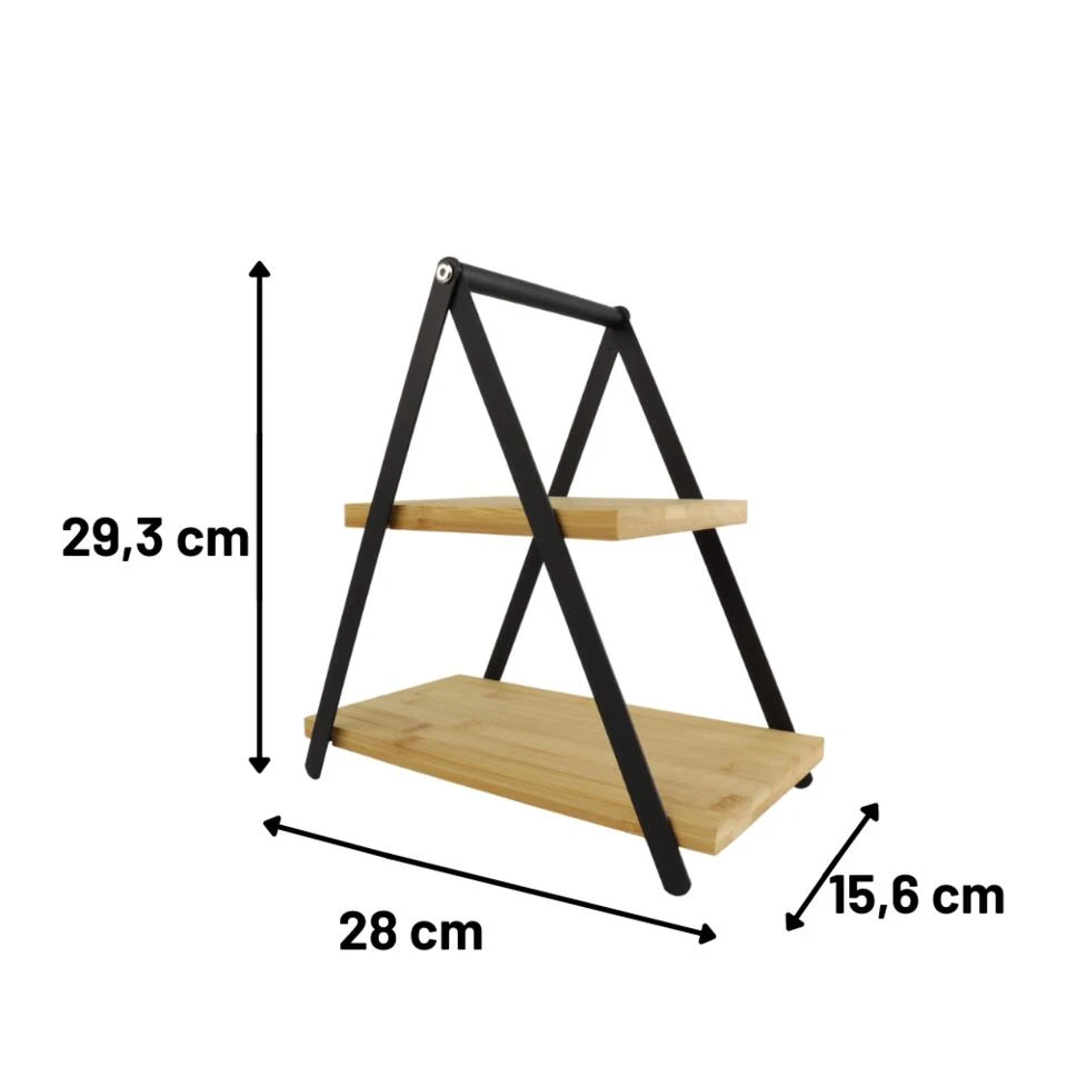Orange85 Serveertoren Etagere Murale Metaal Bamboe 2 Laags 28×15,6×29,3cm
