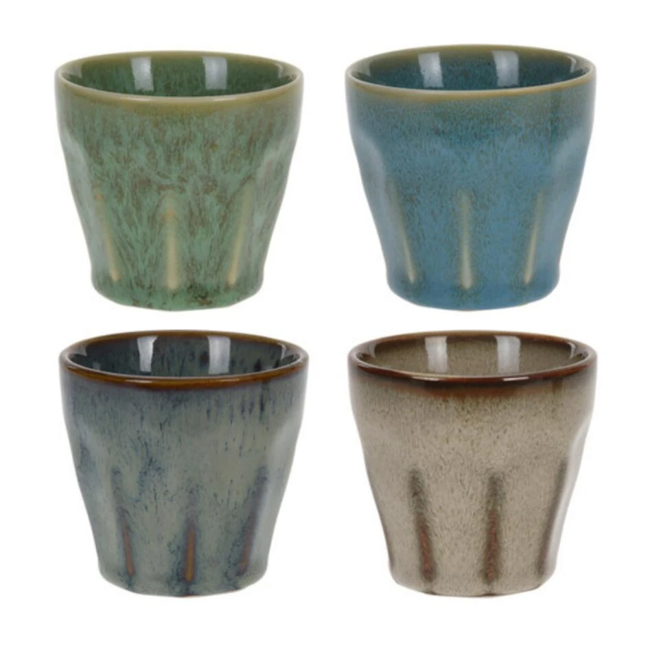 Deze espressokopjes van OTIX komen in een set van 4. De espressokopjes zijn gemaakt van porselein. De kopjes hebben elk een andere blauwe of grijze kleur. De inhoud van een kopje is 90ml. Dit maakt het kopje geschikt voor een lekkere (dubbele) espresso. Deze kopjes zijn stapelbaar. De kopjes zijn geschikt voor in de vaatwasser.