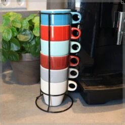 Ben jij een koffieliefhebber? Dan kun jij deze OTIX Koffiekopjes met Houder Set van 6 Gekleurd 300 ml zeker gebruiken. Deze set van 6 gekleurde koffiekopjes is de perfecte aanvulling op jouw huidige kopjes. De set heeft namelijk een houder waarin de kopjes kunnen worden opgeborgen. Zo staan ze niet in de weg, maar heb jij wel altijd genoeg kopjes mocht je visite verwachten. Daarnaast zijn de kopjes vaatwasser bestendig, waardoor je ze gemakkelijk kunt reinigen.