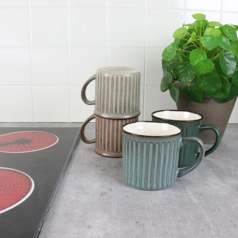 OTIX Koffiekopjes Met Oor Set Van 4 Aardewerk 250 Ml MOSS
