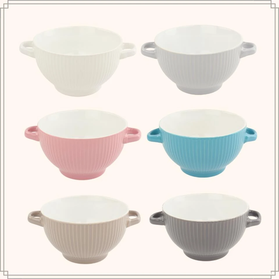 Deze soepkommen van OTIX zijn gemaakt van aardewerk. De soepkommen worden geleverd per 6 stuks. Elke kom heeft een inhoud van 680 ml. De kommen hebben aan beide kanten een oor. Hierdoor is het optillen van een kom gevuld met hete soep geen probleem. De kommen zijn geschikt voor in de vaatwasser.