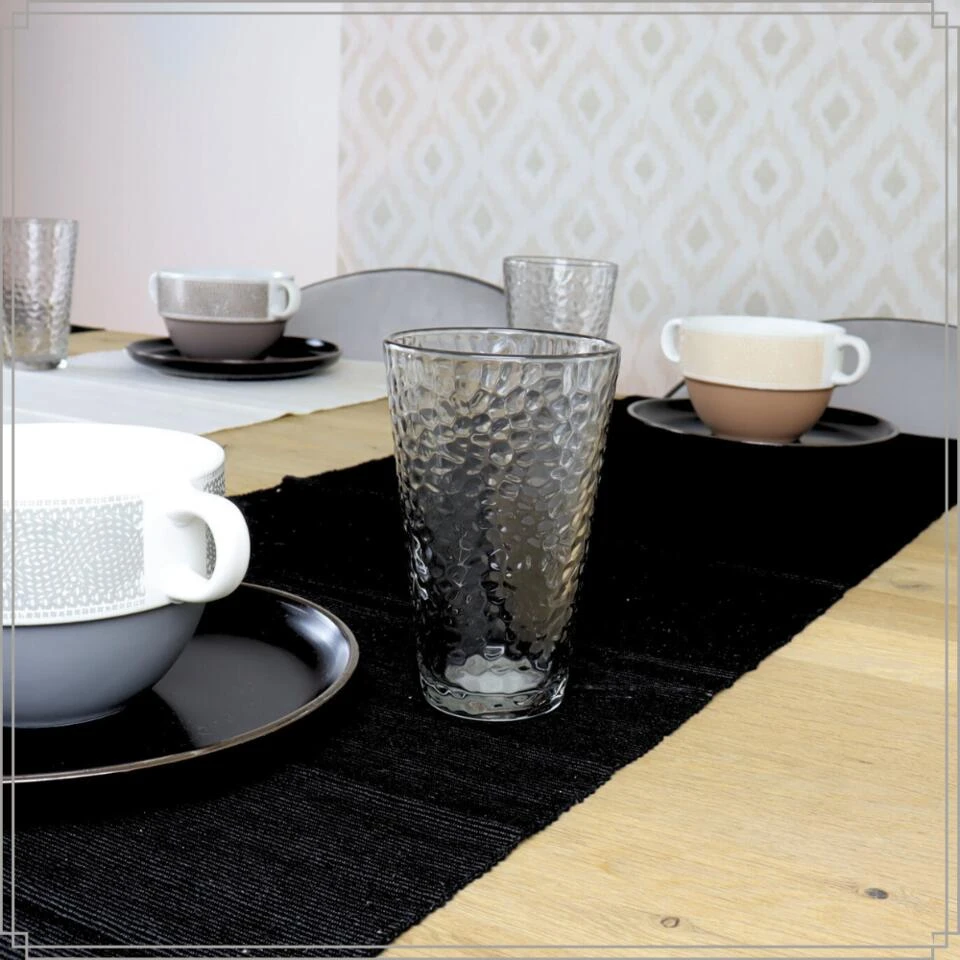 De OTIX Waterglazen Longdrink Glazen Set van 6 in de kleur grijs is een prachtige aanvulling op elke tafelsetting. Deze set bestaat uit zes glazen van 300 ml, gemaakt van hoogwaardig glas met een unieke textuur. Het glasontwerp geeft deze glazen een elegante uitstraling, terwijl de rookgrijze kleur een eigentijdse twist geeft aan deze klassieke glazen. Deze longdrinkglazen zijn stapelbaar, waardoor ze gemakkelijk op te bergen zijn.