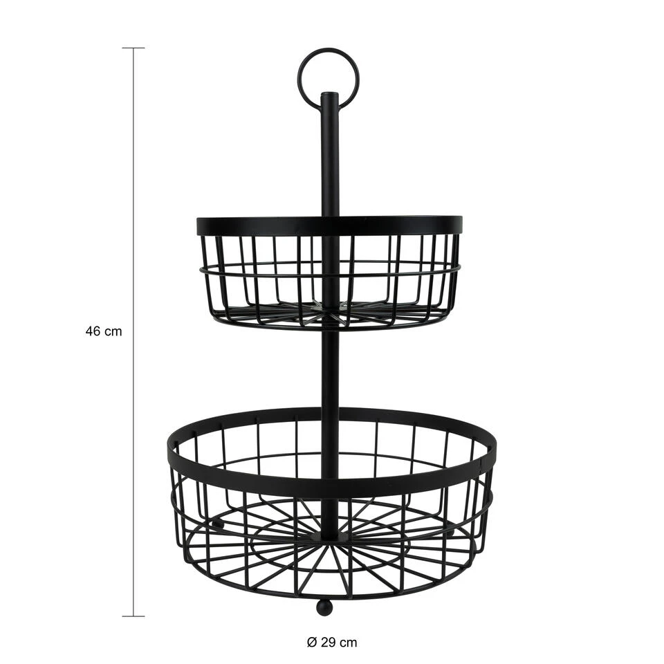 Deze fruit organizer heeft twee manden voor al het fruit. De bovenste mand is wat kleiner dan de onderste, waardoor de opberger taps toeloopt. Hierdoor lijkt de fruitschaal minder groot, terwijl het wel veel opbergruimte biedt. Het zwarte metalen frame ziet er stoer uit en is gemakkelijk te combineren met diverse woonstijlen. Zo past deze tweelaagse fruitmand perfect in een industrieel interieur, maar misstaat het ook zeker niet in een modern of Scandinavisch ingericht huis. Weet jij al waar je de fruitschaal neerzet?