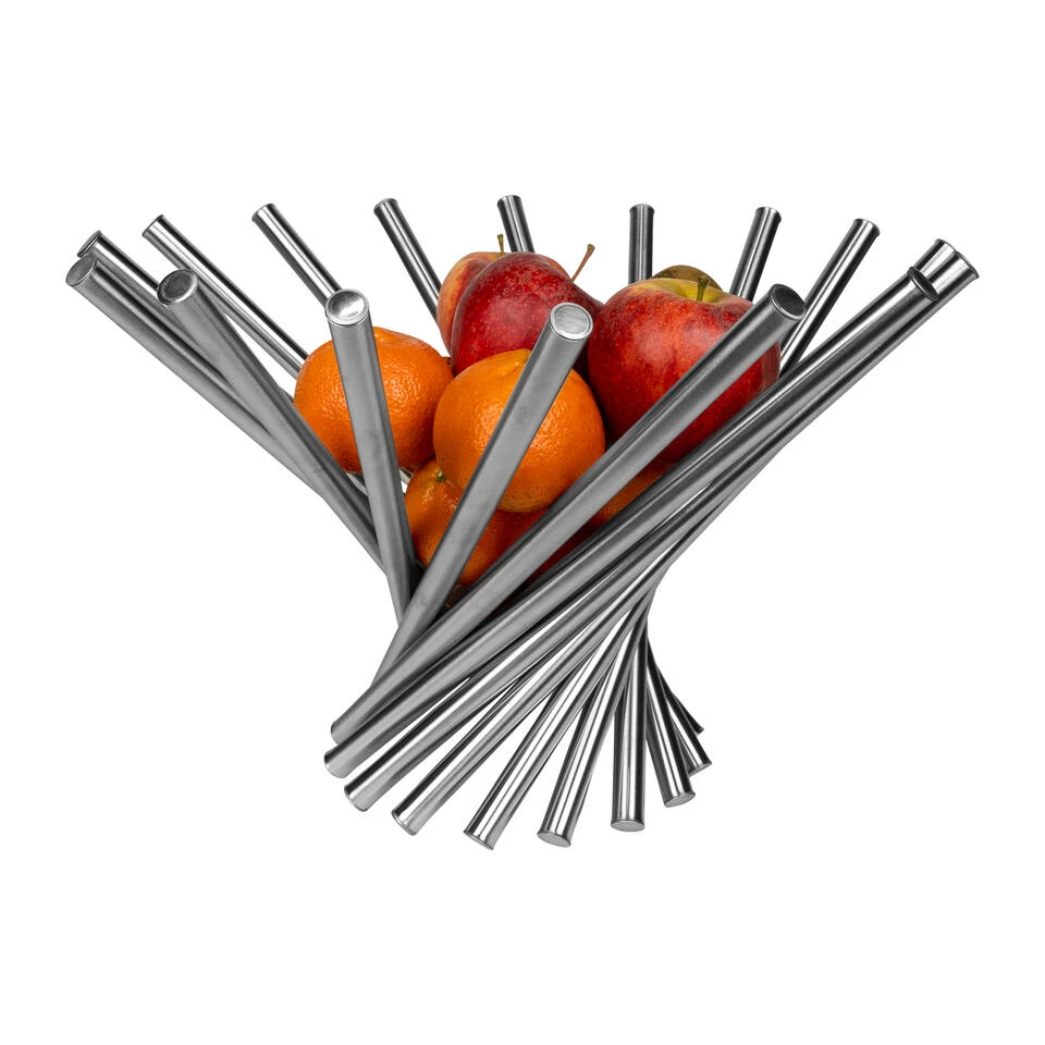 De constructie van RVS zorgt ervoor dat de fruitmand een erg moderne look heeft. Daarnaast is er erg slim nagedacht over het ontwerp, waardoor je er zeker van kunt zijn dat er geen fruit door de spijlen kan vallen. Toch kun je dankzij de spijlen wel makkelijk zien wat voor stukken fruit je hebt liggen in de fruitschaal.