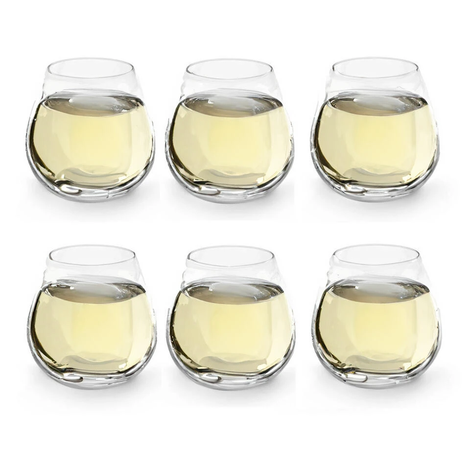 Set van 6x stuks wijnglazen zonder voet transparant. Inhoud: 470 ml(47cl). Materiaal: glas. Formaat: diameter boven: 6 cm. Diameter midden: 9,5 cm. Diameter onder: 4 cm. Hoogte: 9 cm. Geschikt voor: vaatwasser. Geschikte dranken: witte wijn. Zoek voor meer glazen in deze serie op: Ronda.