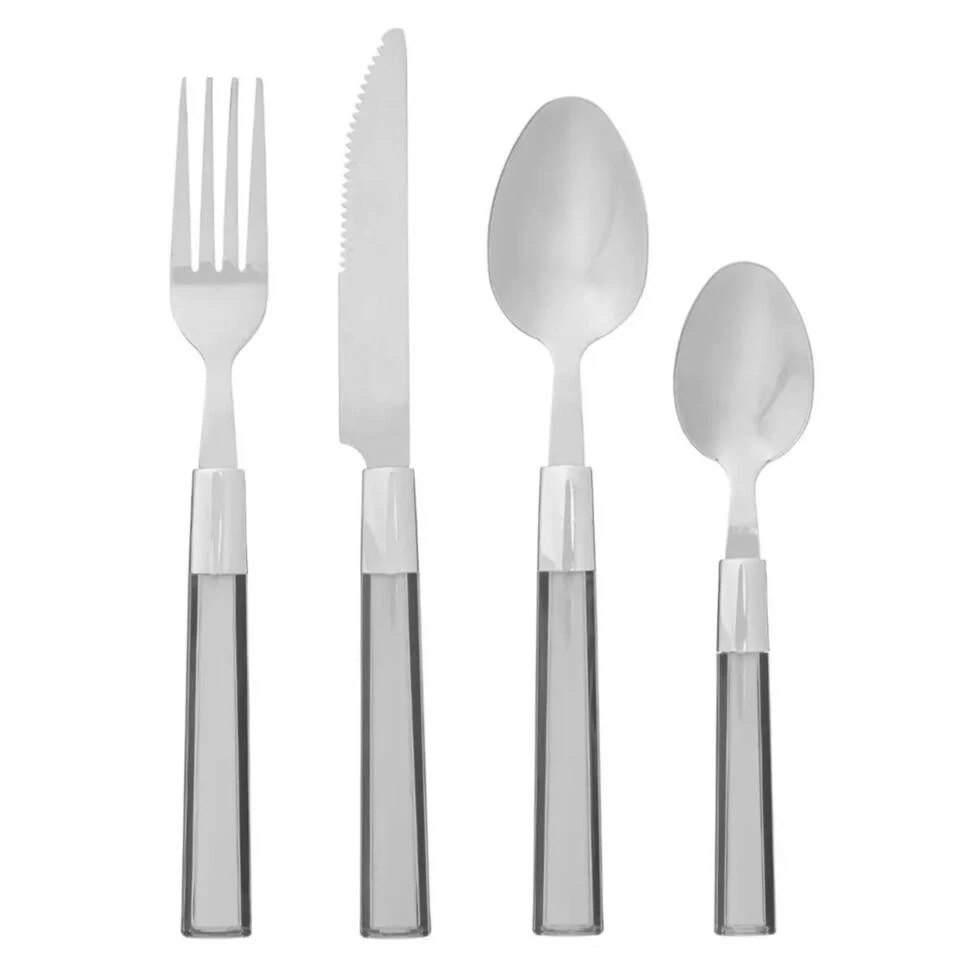 24-Delige bestekset Tamaris grijs. Dek de tafel met deze opvallende complete bestekset geschikt voor 6 personen. De set bestaat uit 6x messen, 6x vorken, 6x lepels en 6x koffie/theelepeltjes en beschikken over een vierkant kunststoffen handvat. Materiaal: RVS/ABS/polystyreen. Vaatwasserbestendig.