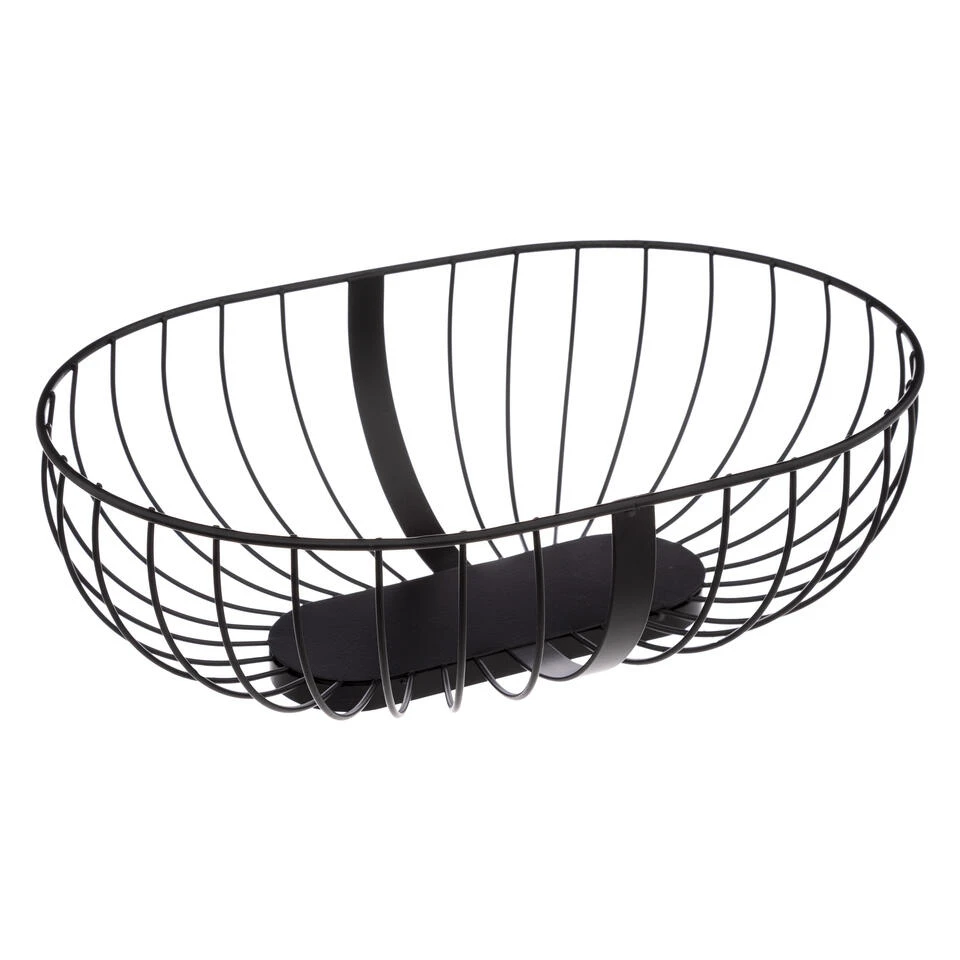Fruitschaal/fruitmand metaal met inzetbakje zwart/petrol blauw 30 x 20 cm. De opengewerkte schaal zorgt voor een constante luchtcirculatie waardoor het fruit minder snel overrijp is. Met plastic inzetbakje voor klein fruit zoals druiven en kersen. Afmeting: ca. 32 x 21 x 10 cm. Reinigen: afnemen met een vochtige doek. Fruitschalen/fruitmanden/draadmanden.