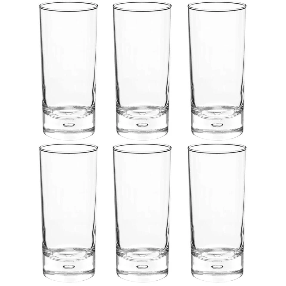 Set van 6x stuks water glazen 290 ml. Afmeting: ca. D6 x 14 cm, diameter onderkant ca. 5,5 cm. Inhoud: ca. 290 ml/29 cl. Gewicht per glas: ca. 275 gram. Materiaal: glas. Reinigen: vaatwasser geschikt. Serie: Georgi.
