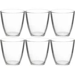 Set van 6x stuks water glazen 250 ml. Afmeting: ca. D8 x 8,5 cm, diameter onderkant ca. 6 cm. Inhoud: ca. 250 ml/25 cl. Gewicht per glas: ca. 165 gram. Materiaal: glas. Reinigen: vaatwasser geschikt. Serie: Claudi.
