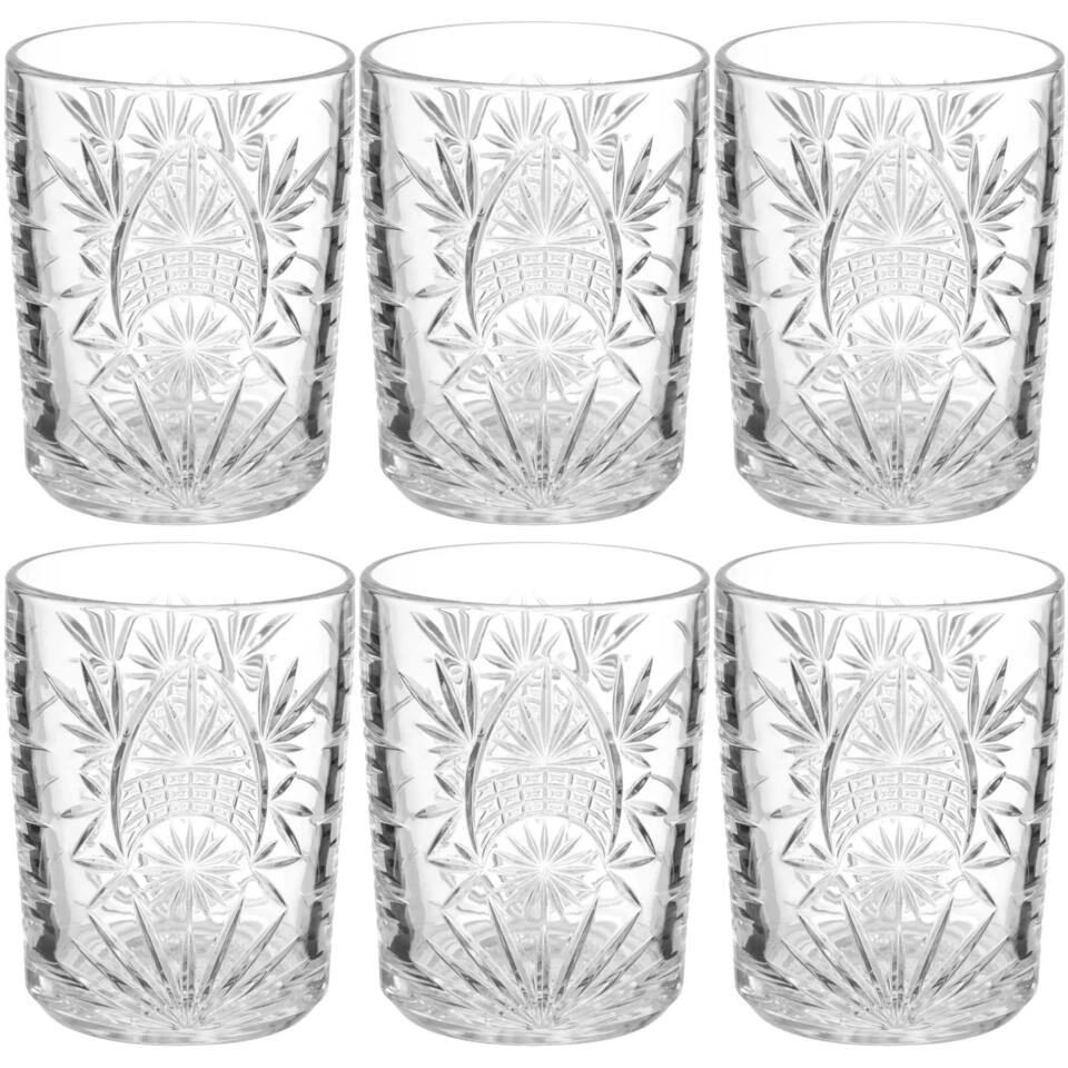 Set van 6x stuks water glazen 350 ml. Afmeting: ca. D8 x 11 cm, diameter onderkant ca. 10 cm. Inhoud: ca. 350 ml/35 cl. Gewicht per glas: ca. 300 gram. Materiaal: glas. Reinigen: vaatwasser geschikt. Serie: Ayla.