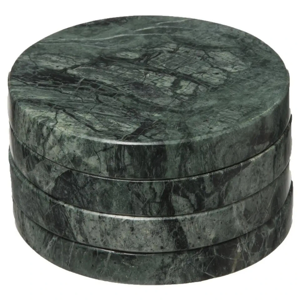 Set van 4x ronde onderzetters voor glazen groen. Deze onderleggers hebben een moderne en stijlvolle uitstraling. Afmeting: ca. D10 x 1,8 cm. Materiaal: marmer.