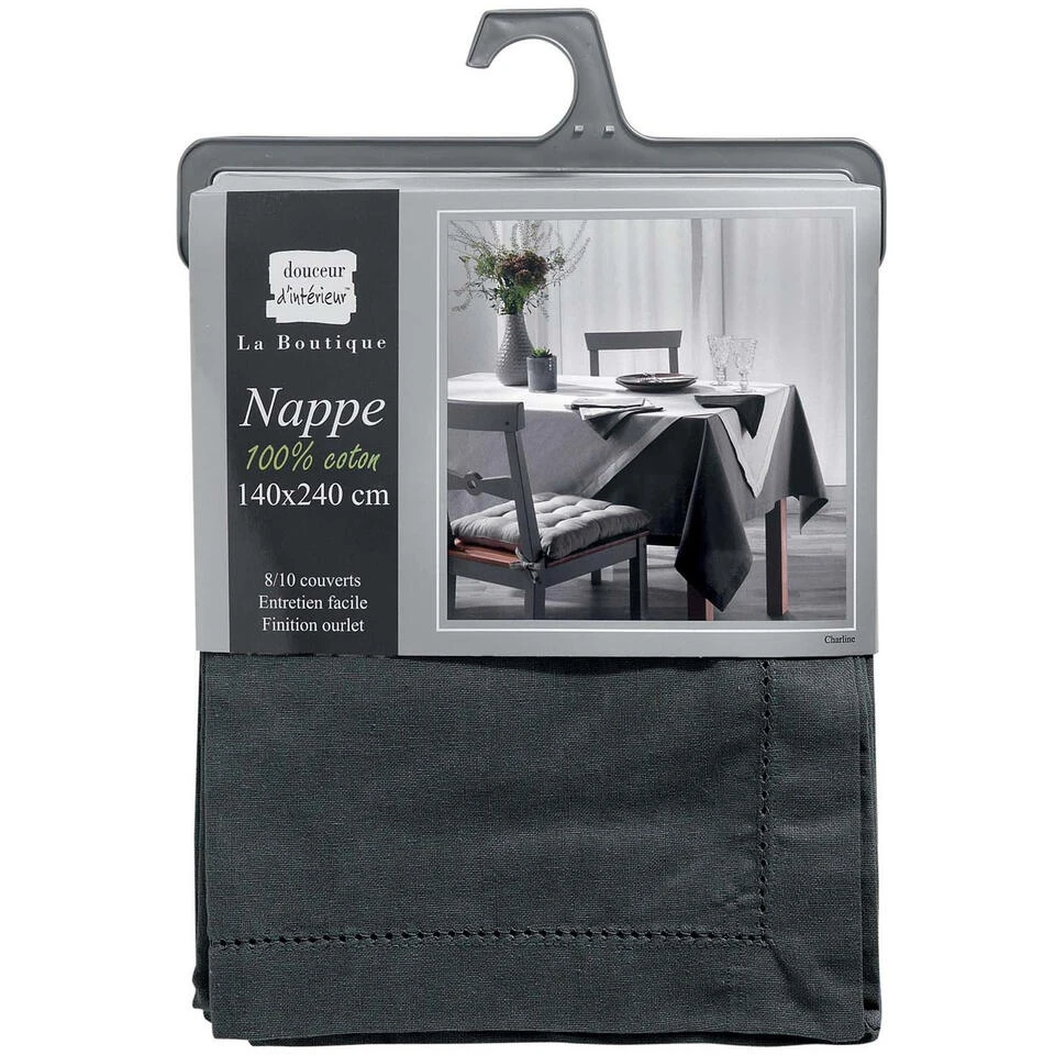 Antraciet grijs tafelkleed van katoen met formaat 140 x 240 cm. Het tafelkleed is mooi afgewerkt aan de randen en op 30 graden wasbaar.